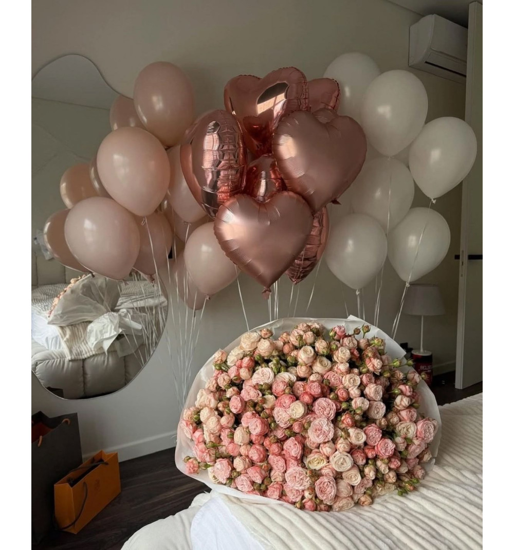 Огромный букет из кустовых пионов — это настоящее цветочное облако, наполненное нежностью и объемом.